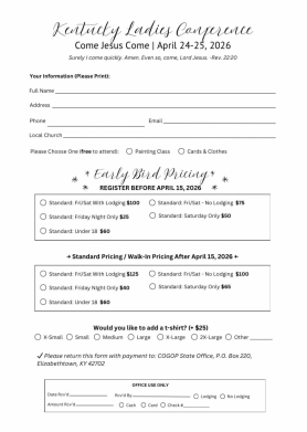 Early Bird Registration is available through April 14th and will no longer be available on April 15th. Early Bird will give you a $25 discount on either the "Friday/Saturday with Lodging" or "Friday/Saturday- No Lodging" selections. There is also a $15 Early Bird discount for the "Friday Night Only" and "Saturday Only" Selections.